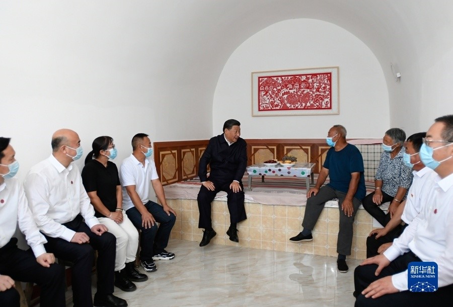 9月13日至14日,中共中央总书记、国家主席、中央军委主席习近平在陕西省榆林市考察。这是14日下午,习近平在绥德县张家砭镇郝家桥村,看望村民侯志荣一家。新华社记者 李学仁 摄
