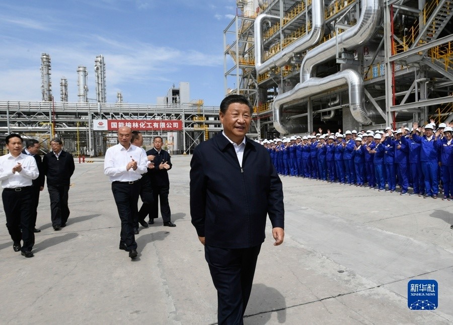 9月13日至14日,中共中央总书记、国家主席、中央军委主席习近平在陕西省榆林市考察。这是13日上午,习近平在国家能源集团榆林化工有限公司年产40万吨乙二醇项目现场考察。新华社记者 李学仁 摄