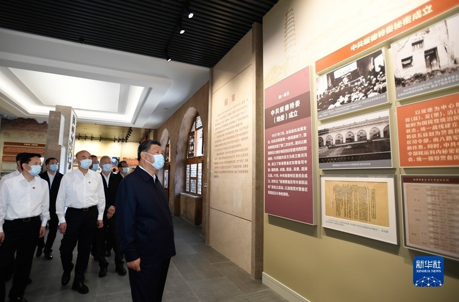 9月13日至14日,中共中央总书记、国家主席、中央军委主席习近平在陕西省榆林市考察。这是14日上午,习近平在中共绥德地委旧址考察。新华社记者 李学仁 摄